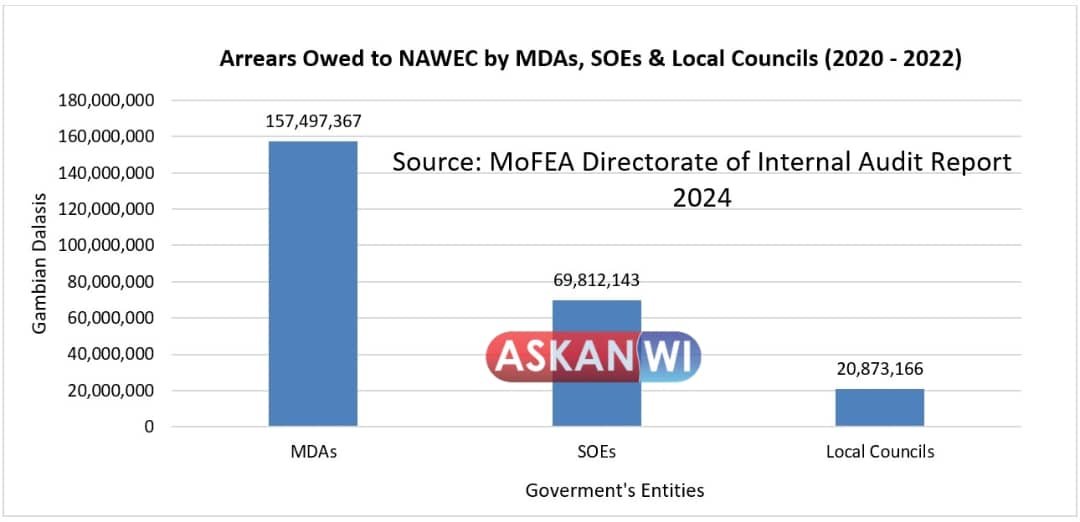 The National Water and Electricity Company (NAWEC) is grappling with significant financial challenges due to unpaid bills from government ministries, departments, and state-owned enterprises (SOEs). This growing debt, highlighted in the 2024 Final Report of the Directorate of Internal Audit on SOE arrears for 2020-2022, underscores the severe financial pressures facing the country’s main utility provider.